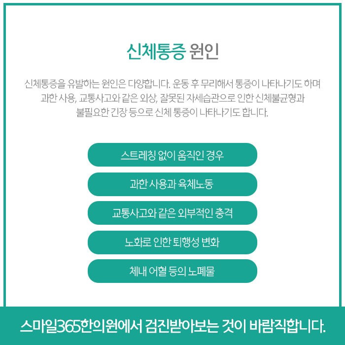 오랜 시간 한 자세를 지속하게 되면 자신도 모르는 사이에 몸이 조금씩 틀어지고 전체적인 척추 불균형을 가져옵니다. 허리, 목, 어깨, 무릎 등 다양한 부위에 통증이 이어지기도 합니다. 척추 불균형은 몸 안의 내부 장기의 균형마저 깨뜨리기 때문에 이후 건강상태에 많은 영향을 미칠 수 있습니다.