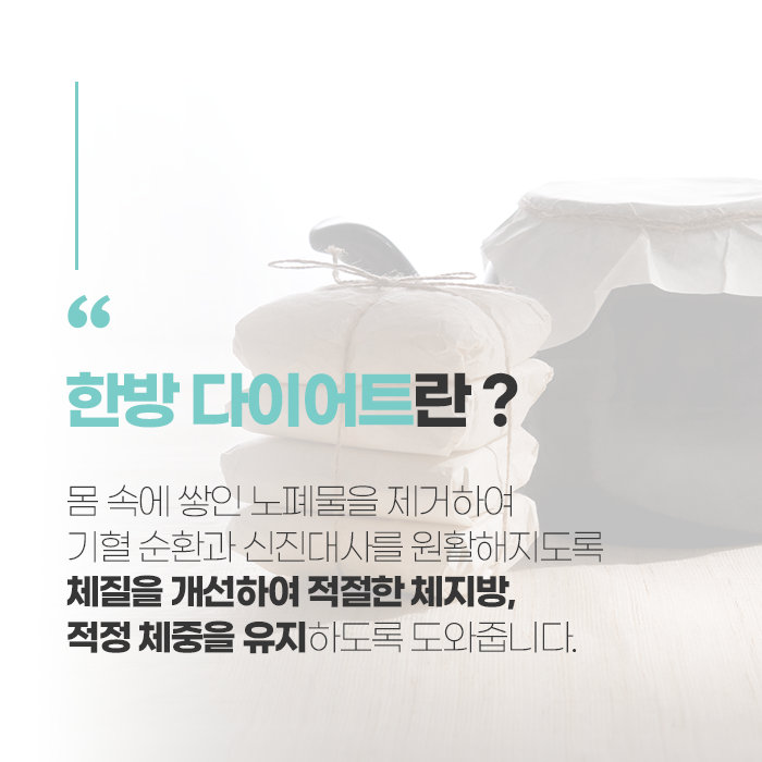 하지만 단순히 한약을 복용하는데만 의존하지 않고 일상 생활 속 식습관을 개선하는 것이 무엇보다 중요합니다. 게다가 평소 꾸준하게 운동을 해주어야 합니다. 건강하게 다이어트 하려면 체중에만 집중하기 보다는 체성분을 잘 관리해야 합니다. 건강 상태와 개인 체질에 따라서 목표 몸무게를 설정하도록 해야합니다.