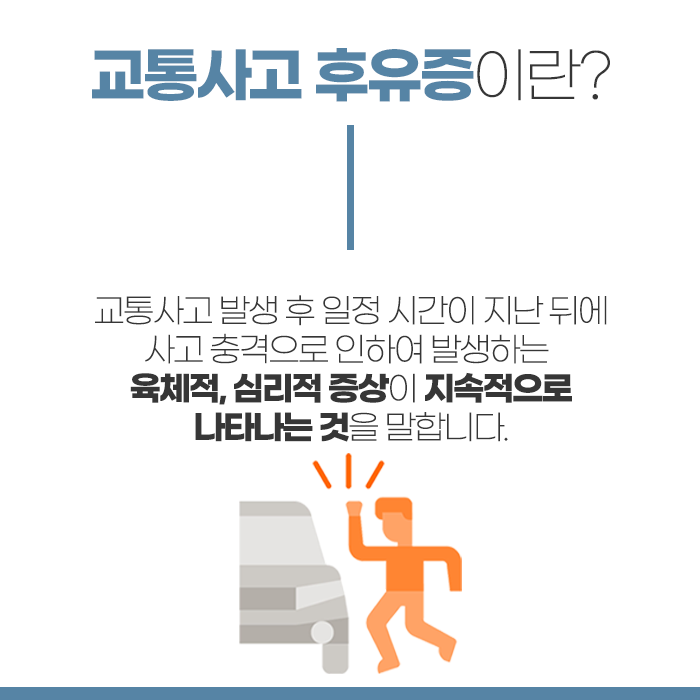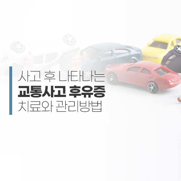 교통사고가 나면 차량 파손이나 밀린 업무를 처리하는 등 신경 쓸 일들이 많습니다. 그러나 무엇보다 후유증이 발생하지 않도록 건강을 살피고 진료를 받아야 합니다. 사고 당일로부터 4주 동안의 치료 과정이 가장 중요합니다. 경미한 정도의 사고규모는 사고 당일부터 하루이틀 정도는 증상을 곧바로 느껴지지 않기도 합니다. 그러나 생활 속에서 몸을 사용하면서 뒤늦게 통증이 나타나거나 증상들이 서서히 나타나게 됩니다.