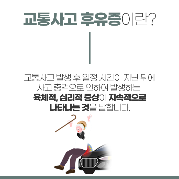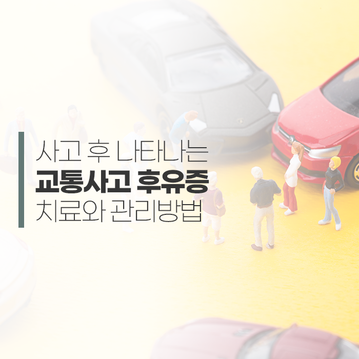 갑자기 발생한 교통사고로 차량 파손이나 밀린 업무 등 신경써야 할 일이 많아집니다. 그러나 가장 중요한 것이 신체 내외적으로 후유증이 남지 않도록 진료를 받는 것입니다. 후유증이 나타나지 않도록 신속하게 대처해야 하고 사고로부터 4주 동안의 치료 과정이 중요합니다. 사고의 규모가 크지 않은 경우 사고 당일 혹은 하루이틀 정도 증상이 나타나지 않기도 합니다.
