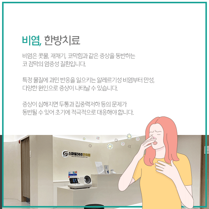 한약에서 추출해 정제한 약물을 주입하는 약침치료는 어혈을 제거하고 기혈순환을 촉진해 손상된 호흡기와 심폐 주변 조직의 재생을 돕고 염증을 완화합니다. 또한 비강 점막을 회복하며 공기 흐름을 개선하고 호흡을 원활하게 합니다.
