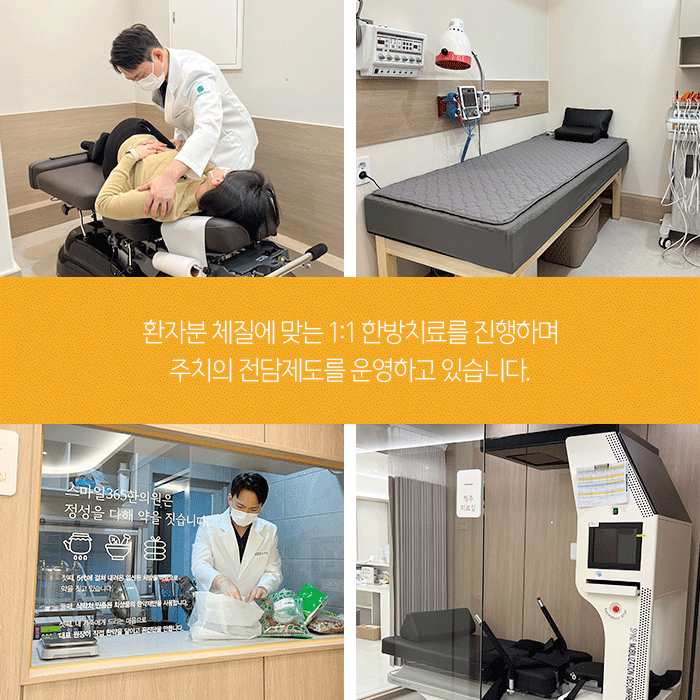 이를 개선하기 위해 적용하는 추나요법은 의료진이 손과 신체, 소도구 등을 활용해 환자분 틀어진 신체를 밀고당기는 자극으로 기혈순환을 촉진하며 체내 어혈을 제거하는 한방치료입니다.