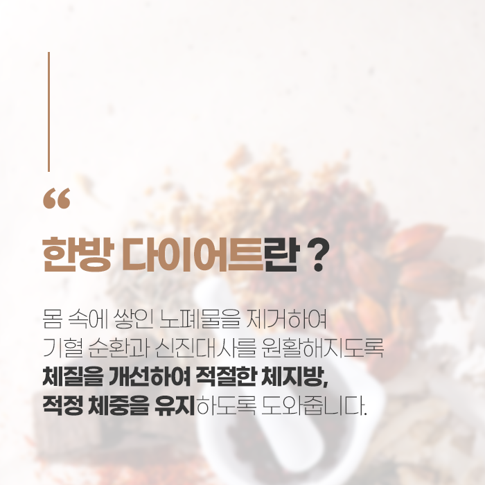 특히 출산 후 체중이 늘어난 여성이나 만성적인 피로, 소화기능 저하 등의 문제가 있는 경우, 무리한 다이어트는 오히려 건강을 해칠 수 있습니다. 이럴 땐 개인의 상태에 맞춘 한약 복용과 함께 식이 조절, 수면, 스트레스 관리 등 생활 전반의 습관을 함께 조율해주는 한방 다이어트가 더 적합합니다.