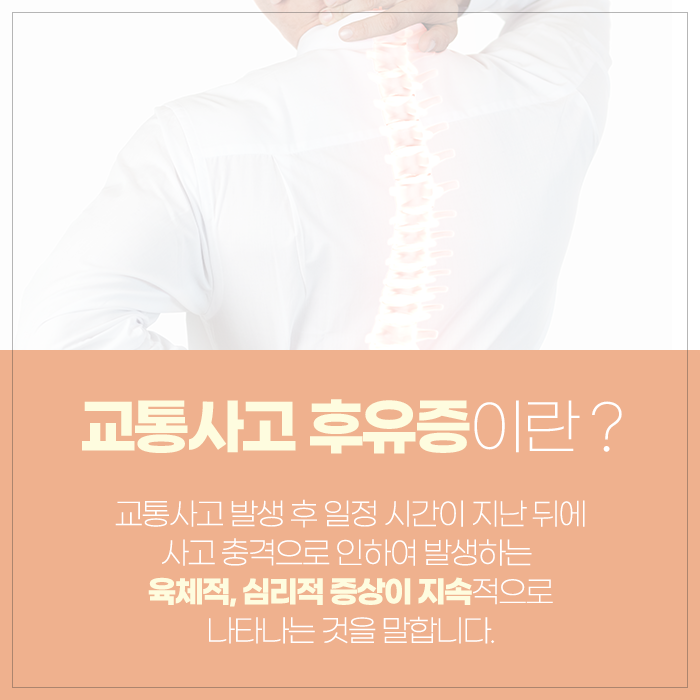 교통사고는 그 순간만으로도 큰 충격을 주지만, 더 무서운 것은 시간이 흐른 뒤에야 서서히 드러나는 '후유증'입니다. 특히 가벼운 접촉 사고라 하더라도 인체는 상당한 충격을 받을 수 있으며, 사고 직후 별다른 증상이 없어도 며칠이 지나고 나서야 통증이나 불편함이 나타나는 경우가 많습니다. 이러한 교통사고 후유증은 대부분 신체 내부에서 조용히 진행되기 때문에 조기 발견과 치료가 무엇보다 중요합니다. 개인차가 크기 때문에 어떤 사람은 하루 이틀 만에, 또 어떤 사람은 몇 주, 심지어는 몇 달 후에 후유증을 겪게 되기도 합니다.