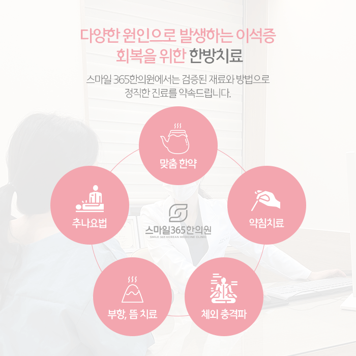 주입되는 약물에 따라 여러 방법이 있으며 환자분 체질과 성분에 대한 알레르기 반응을 확인한 후에 진행하는 한방치료입니다. 체내 순환이 원활하게 이뤄지지 않고, 특히 뇌로가는 혈류순환이 제대로 이뤄지지 않으면 성내동 어지럼증이 나타나기도 합니다. 이 경우 적용하는 추나요법은 의료진이 손과 신체, 소도구 등을 활용해 환자분 틀어진 신체를 밀고당기는 자극으로 기혈순환을 촉진하는 방법입니다.
