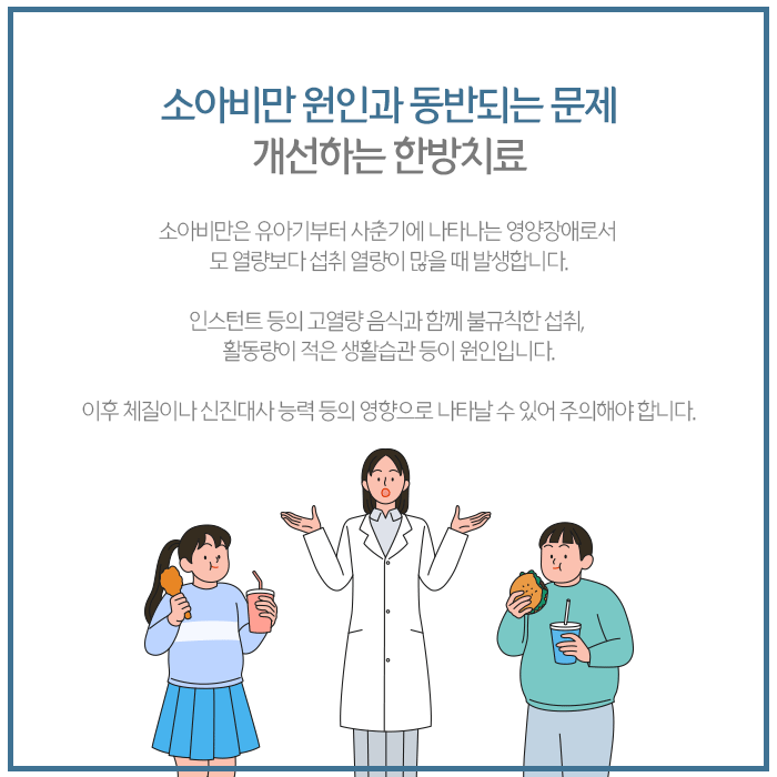 외에도 소아비만, 성조숙증 등의 문제도 개인적인 관리만으로 개선하는데 한계가 있어 고성동 유아보약 등의 한방치료의 도움받는 것이 좋습니다. 본원에서는 정밀한 검진을 통해 아이의 체질과 체형에 맞는 한약과 보약, 추나요법, 약침, 뜸 등의 복합적인 한방치료를 적용합니다.