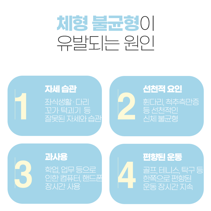 허리 디스크, 목 디스크, 척추측만증, 협착증, 골반 비대칭, 무릎 통증 등 구조적인 이상뿐 아니라, 잘못된 자세나 스트레스로 인해 나타나는 만성적인 근육 긴장에도 효과를 기대할 수 있습니다.