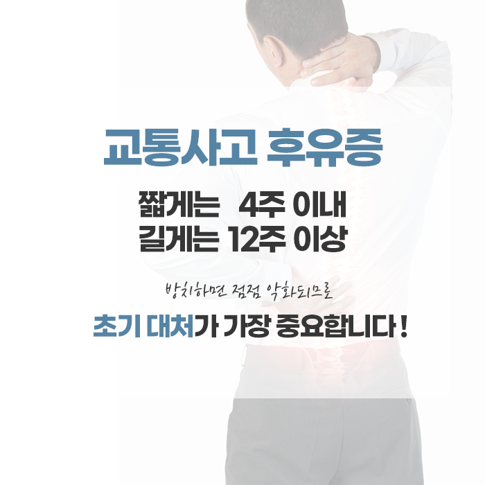교통사고는 단순한 순간의 충격으로 끝나지 않습니다. 사고 직후 신체적·정신적으로 다양한 변화가 나타날 수 있으며, 특히 사고 후 처음 4주는 후유증 예방과 회복에 매우 중요한 시기입니다. 초기에는 눈에 띄는 증상이 없을 수도 있지만, 시간이 지나면서 목, 어깨, 허리 등 여러 부위에 점차 통증과 불편함이 나타날 수 있어 세심한 관찰과 적절한 대처가 필요합니다. 후유증은 대개 사고 후 며칠에서 일주일 내에 발생하지만, 드물게는 몇 달이 지나서야 증상이 발현되기도 합니다.