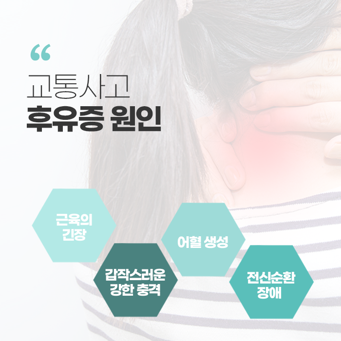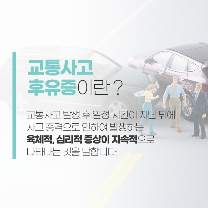 교통사고는 단순한 충돌 사고로 끝나는 것이 아니라, 이후에도 신체와 정신에 복합적인 영향을 남길 수 있는 사건입니다. 사고 직후에는 외상이 뚜렷하지 않아 대수롭지 않게 넘기는 경우가 많지만, 며칠 혹은 몇 주가 지난 뒤부터 목, 어깨, 허리, 무릎 등의 부위에 통증이나 불편함이 서서히 나타날 수 있습니다. 어떤 경우에는 수개월이 지난 후에 이상 증상이 생기기도 하므로 초기부터 꾸준한 관찰과 관리가 필요합니다. 특히 사고 후 4주 이내는 후유증 예방과 회복을 위한 중요한 시기로, 신체와 정신 모두에 대한 세심한 대응이 요구됩니다.