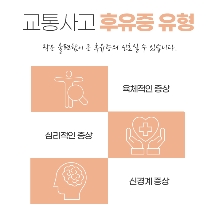 또한 신체적인 문제 외에도 정신적인 충격은 교통사고 후 자주 동반되는 반응입니다. 사고 이후 갑작스럽게 불안감이나 우울, 불면증, 집중력 저하 등을 겪는 경우가 많으며, 이는 자율신경계의 불균형과도 연결됩니다. 속이 메스껍거나, 심장이 두근거리고, 쉽게 피로해지는 증상들은 단순한 심리적인 반응이 아니라 신체 전반의 기능 저하와 관계되어 있을 수 있습니다. 따라서 단순히 통증 부위만을 치료하기보다는, 신체 전체의 균형을 바로잡는 통합적인 치료가 필요합니다. 또한 신체적인 증상 외에도 정신적인 증상까지 고려하여 맞춤형으로 진행되는 것이 중요합니다.
