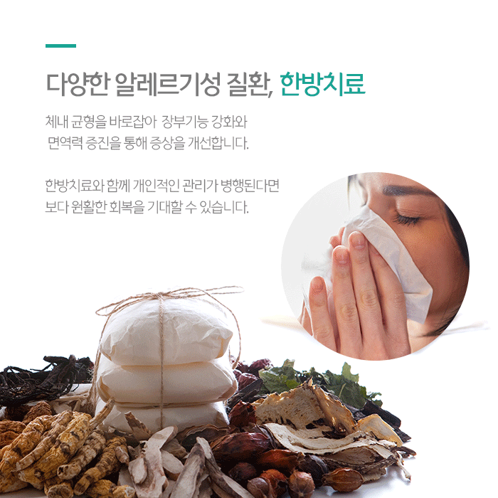 체질에 맞는 약재를 구성해 조제되는 한약은 코 주변 어혈을 제거해 기혈순환을 촉진하고, 염증과 통증을 줄여 비염증상을 완화합니다. 그리고 건강한 혈액을 생성해 면역력 향상과 전반적인 건강증진을 돕습니다.