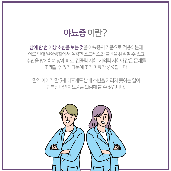야간뇨는 소변 때문에 자고 깨기를 반복하는 증상입니다. 이 때문에 수면의 질이 떨어지면서 늘 피곤하고 피로가 누적되고 면역기능도 약화됩니다. 이러한 야간뇨는 전립선질환과 방광질환으로 발생합니다.