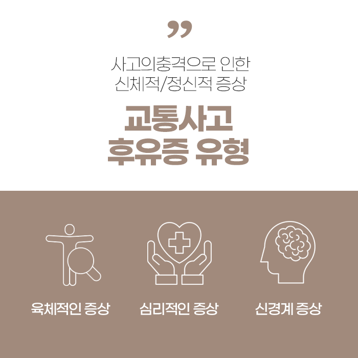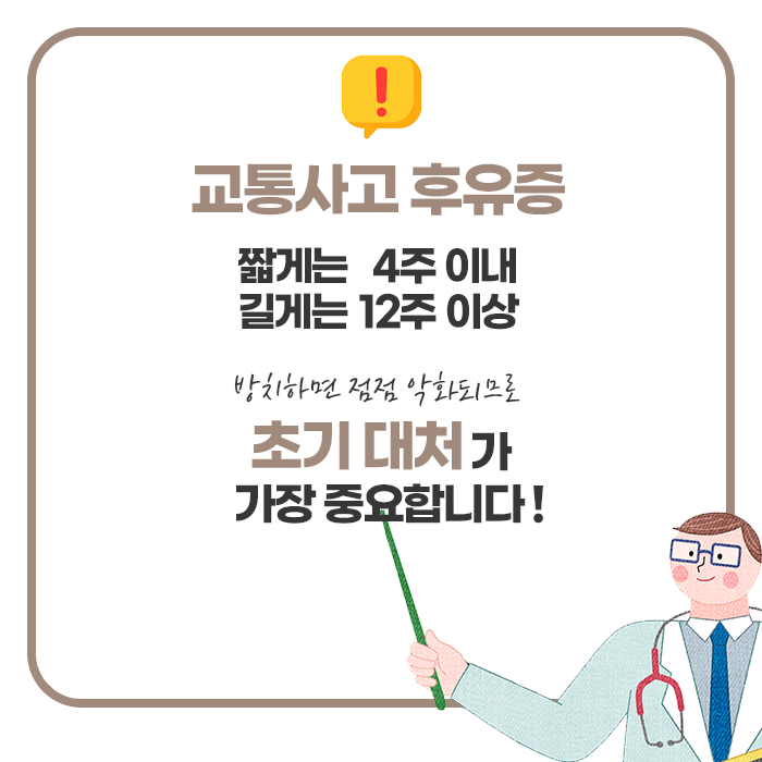 사고 이후 발생하는 신체적, 정신적 후유증은 반드시 전문적인 진료를 통해 정확하게 진단하고 개인 맞춤형 치료 계획을 수립해야 하며, 이를 통해 불필요한 고통을 줄이고 조속히 건강한 일상으로 복귀할 수 있습니다. 결국 교통사고는 예측할 수 없는 사고이지만, 그 이후의 관리와 치료는 사고 직후부터 신중하고 적극적으로 대처하는 자세가 무엇보다 필요합니다.