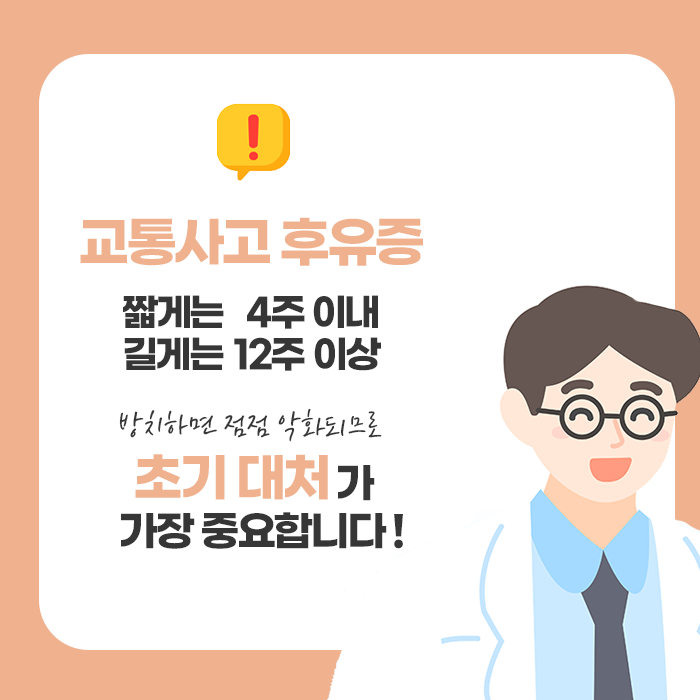 교통사고는 단지 외부에서 가해진 충격 이상의 의미를 갖습니다. 눈에 보이지 않는 내부 손상, 정신적인 충격, 만성적인 통증 가능성 등 다양한 요소들이 복합적으로 얽혀 있는 만큼, 이를 단순한 사고로 치부해서는 안 됩니다. 초기부터 자신의 몸 상태를 면밀히 관찰하고, 통증이나 불편감이 작게라도 느껴진다면 적극적인 치료와 관리를 시작하는 것이 중요합니다.