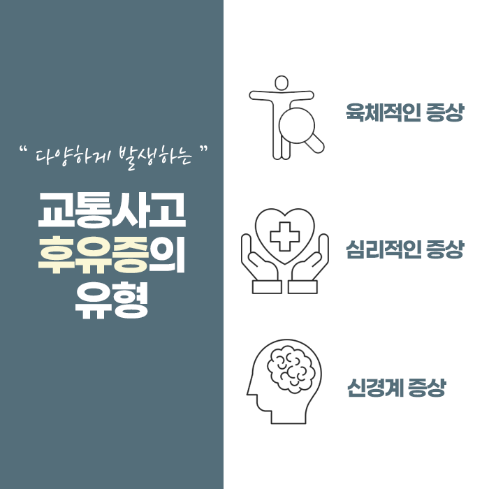또한 교통사고는 심리적인 면에서도 적지 않은 영향을 미칩니다. 사고 경험 자체가 트라우마로 작용해 불면이나 불안, 감정 기복 등의 정신적 증상으로 이어질 수 있습니다. 특히 반복적인 통증이나 신체 이상이 동반될 경우 우울감이 깊어지거나 일상생활에 지장을 초래하는 경우도 적지 않습니다. 이러한 신체·정신적 증상이 맞물려 회복이 지연되는 악순환에 빠지지 않기 위해서는 초기에 체계적인 조치가 필요합니다.