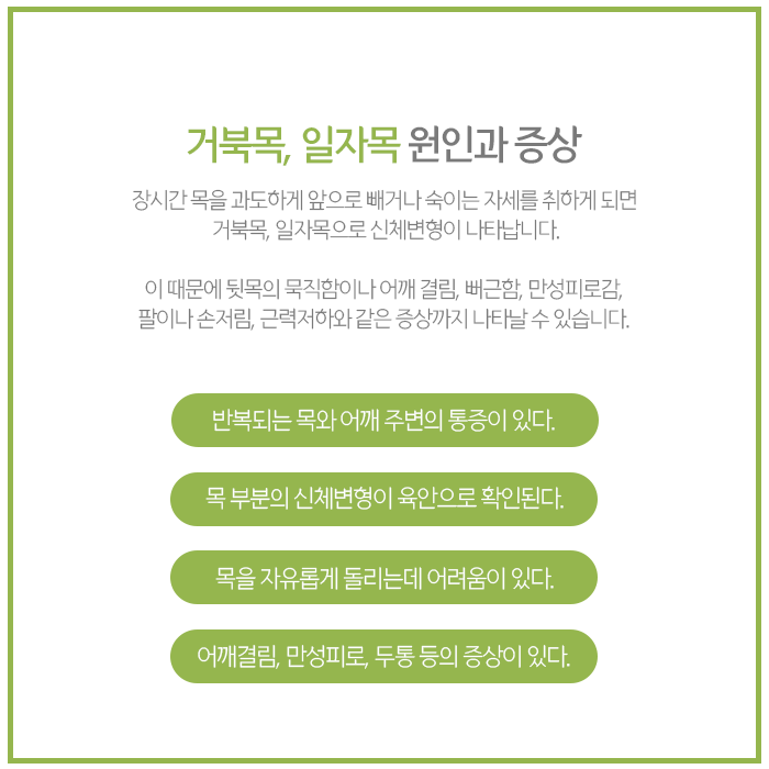 단순한 근육통으로 여기고 방치하면 신경 압박이 지속되면 이후 치료하더라도 회복 기간이 길어지고, 수술해야 하면서 환자분의 부담이 가중될 수 있습니다. 초기 목 디스크 증상 완화와 회복을 위해 추나요법, 한약, 약침, 부항, 뜸 등의 한방치료 도움을 받아볼 수 있습니다.