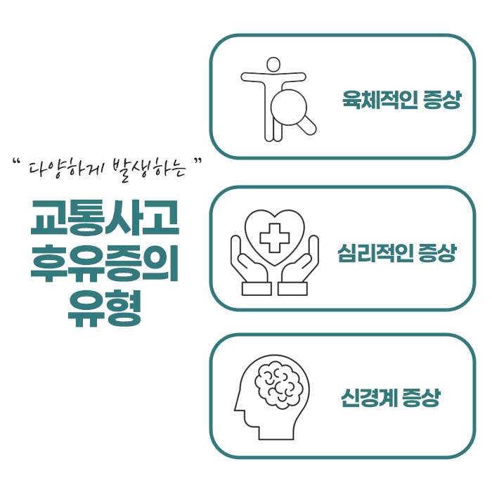교통사고는 누구에게나 예상치 못한 순간에 발생할 수 있는 사건으로, 사고 직후 겉으로 드러나는 외상이 없더라도 신체 내부에는 다양한 손상이 숨어 있을 수 있습니다. 사고 당시 특별한 통증이나 불편함이 없더라도 시간이 지나면서 목과 허리 부위에 점차 통증이 나타나거나 전신에 여러 증상이 발현될 수 있으므로 초기부터 세심한 관찰과 빠른 대처가 필요합니다.