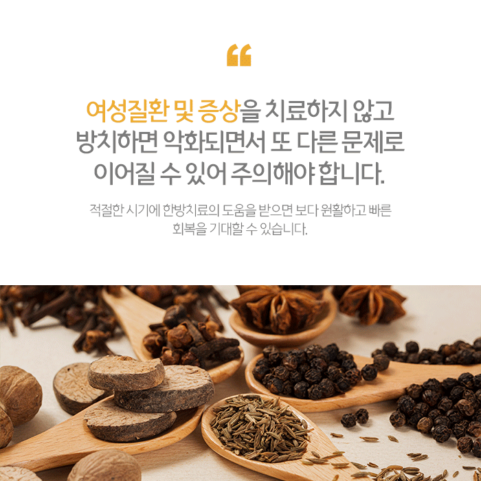 이를 방치하게 되면 임신에 지장이 있을 수 있고, 건강 문제로 이어지기 때문에 조기에 적극적으로 대응해야 하며, 적절한 시기에 한방치료의 도움받는 것이 좋습니다. 생리불순 뿐 아니라 생리통 등의 문제로 고민중이라면 상담을 통해 원인을 파악해야 합니다.
