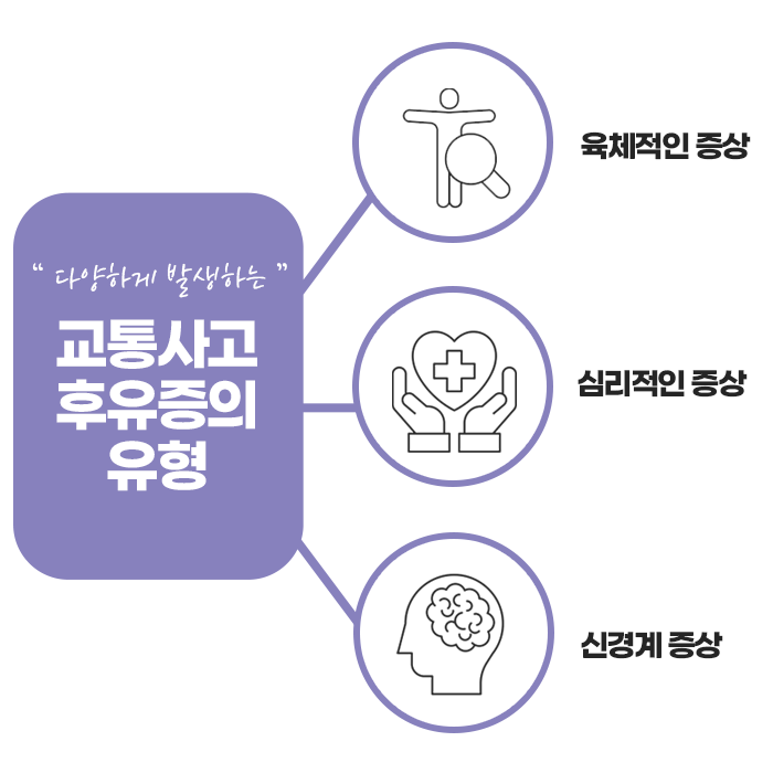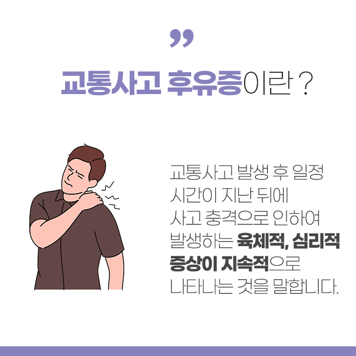교통사고는 사고 순간의 충격보다 그 이후에 나타나는 신체적·정신적 후유증이 더 큰 문제를 야기할 수 있습니다. 사고 직후에는 외상이 없고 멀쩡해 보일 수 있지만, 수시간 또는 수일이 지난 뒤부터 통증이나 불편함이 본격적으로 나타나는 경우가 많습니다. 이는 사고 당시의 긴장감과 아드레날린 분비로 인해 일시적으로 통증을 느끼지 못했기 때문입니다. 그러나 시간이 지나면서 근육, 인대, 관절, 신경 등에 가해졌던 충격이 표면화되기 시작하면서 다양한 후유증으로 이어집니다.