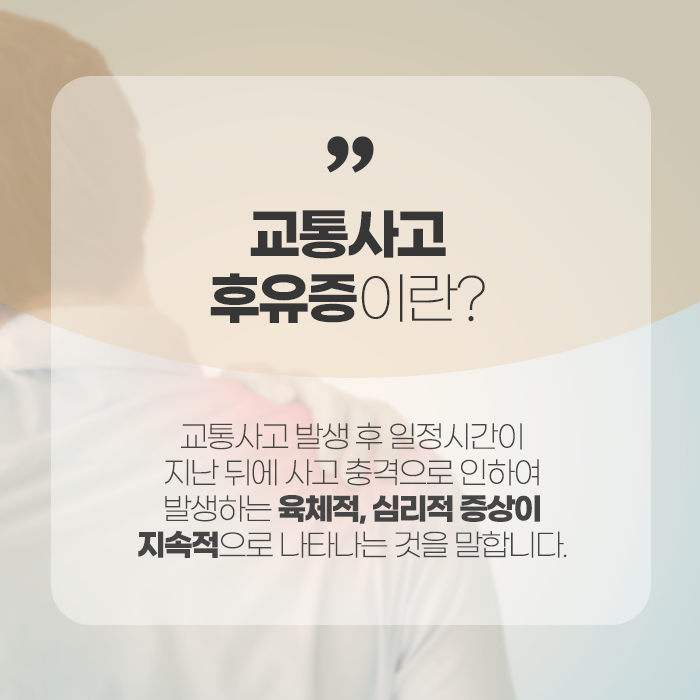 교통사고는 불과 몇 초 안에 벌어지는 일이지만, 그 영향은 우리의 몸과 삶에 장기적으로 남을 수 있습니다. 특히 사고 직후 별다른 통증이 없다고 해서 안심하기 쉽지만, 실제로는 근육, 인대, 신경계 등 깊은 조직에 미세 손상이 발생한 상태일 수 있습니다. 이러한 손상은 시간이 흐르면서 서서히 증상으로 드러나, 며칠 혹은 몇 주 뒤에 불편함을 느끼게 됩니다. 이는 단순한 일시적 통증이 아닌 ‘교통사고 후유증’의 전형적인 양상입니다.
