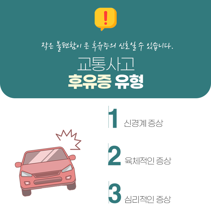 특히, 사고 후에 목이 급격하게 흔들리면서 발생하는 편타성 손상은 목과 어깨 근육의 손상, 인대의 긴장, 심지어 팔에 저림 증상까지 이어질 수 있습니다. 이처럼 신체의 구조적 변화로 인해 시간이 지날수록 목 통증, 어깨 결림, 팔 저림 등 다양한 증상이 나타날 수 있습니다. 교통사고 후 증상이 처음에는 미미하게 느껴져서 "그냥 넘어가도 되겠지" 하고 생각할 수 있습니다.