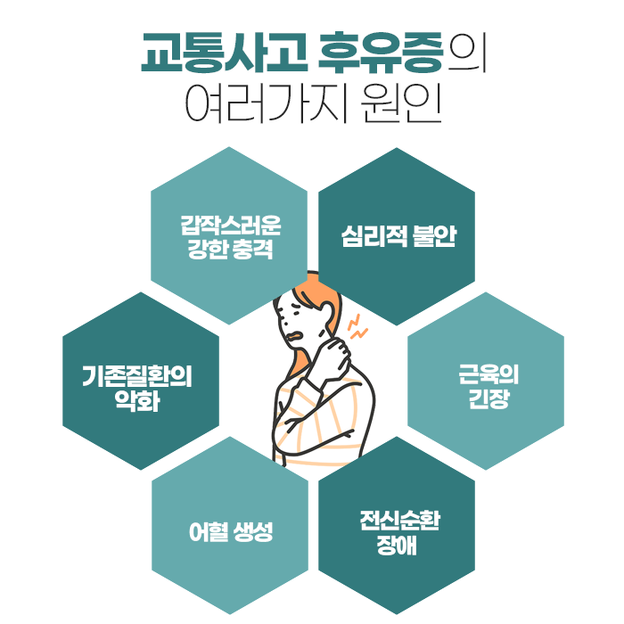 그러나 방치하면 만성적인 통증을 초래할 수 있고, 몸이 작은 자극에도 과도하게 반응하는 상황이 발생할 수 있습니다. 또한, 사고 후에는 단순히 통증을 줄이는 것만으로는 충분하지 않고, 신체의 균형을 되찾기 위한 근본적인 치료가 필수적입니다.