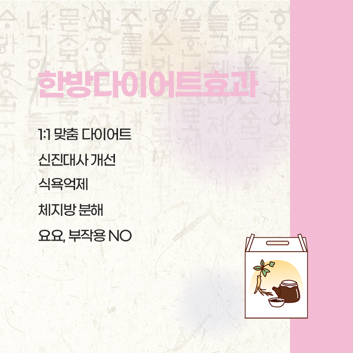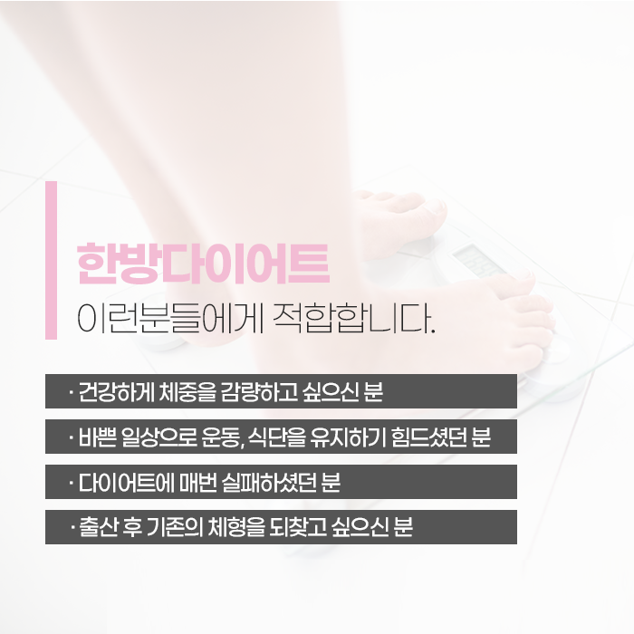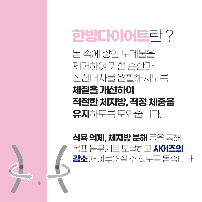 이처럼 개인 맞춤 한방 다이어트는 단순히 체중 감량이 아니라 체질 개선과 신진대사 활성화를 통해 건강한 몸으로 회복시키는 것을 목표로 합니다. 한약은 식욕을 억제하거나 단기적으로 체중을 줄이는 목적이 아니라, 신진대사를 촉진하고 피로를 완화하며 소화 기능을 강화하는 역할을 합니다. 특히 스트레스로 폭식하는 경향이 있거나, 추위를 많이 타고 손발이 차가운 사람, 다이어트 중 쉽게 무기력해지는 사람에게는 한방 다이어트가 효과적입니다. 몸의 순환이 개선되면 자연스럽게 체중이 조절되고, 에너지가 회복되면서 활력이 되살아납니다.