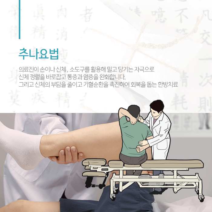 체내 어혈을 제거해 기혈순환을 촉진하여 통증과 염증을 완화하여 다양한 사고 후유증에 회복에 도움이 됩니다. 사고로 손상된 관절과 근육 등의 주변 조직의 재생을 돕고 기능회복을 돕는 추나요법은 경험과 노하우가 많은 숙련된 의료진을 통해 진행하는 것이 좋습니다.