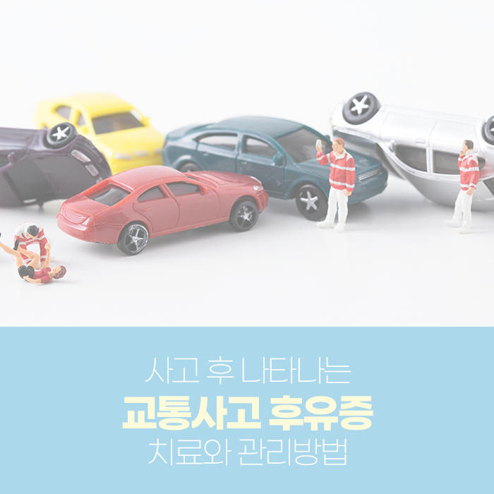 후유증을 바르게 대처하려면 무엇보다 초기의 치료가 중요합니다. 사고 당시 인체는 극도의 긴장감을 느끼고, 아드레날린 등의 호르몬 분비의 영향으로 인하여 통증이나 증상이 바로 생기지 않기도 합니다. 그러나 서서히 증상이 나타나고 더욱 심해질 수 있으므로 신속하게 대처해야 합니다. 단긴간 완전히 쾌유되지 않을 경우 증상 재발을 막기 위하여 꾸준한 관찰과 관리가 필요합니다.