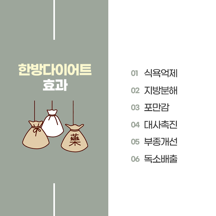 과체중과 비만을 치료하는 성내동한방다이어트 는 칼로리를 적당히 소모시켜주고 신진대사를 활성화 해줍니다. 게다가 몸에 무리가 되지 않게 식욕을 조절해주고 식사량을 낮춥니다. 또한 탄순화물이 지방으로 합성되지 않도록 막아주는 효과가 있으며 체지방이 쌓이지 않도록 지방 합성 억제 효능이 있습니다. 개인마다 약재의 배합은 다르게 처방될 수 있습니다. 하지만 공통적으로는 식욕 조절과 신진대사를 촉진시켜 주는 효능의 약재가 포함됩니다.
