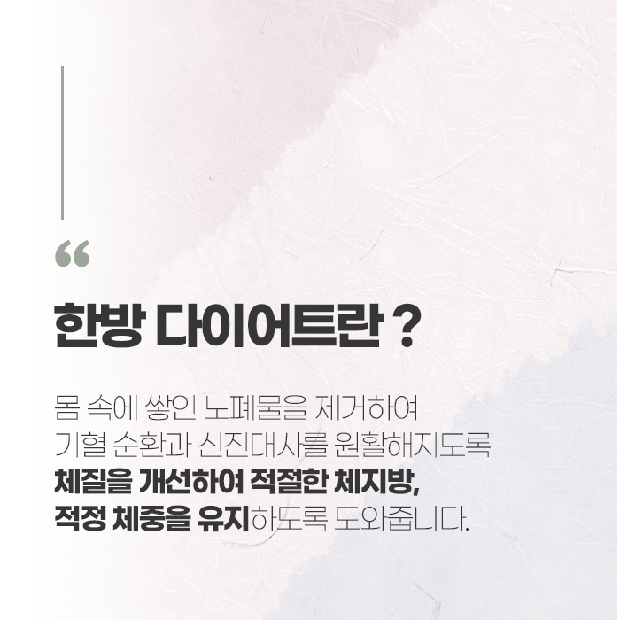대부분의 사람들이 다이어트라 하면 무작정 굶는 것을 생각합니다. 하지만 현명하고 건강하게 체중을 감량하는 것이 중요합니다. 천연 성분을 기반하고 있는 한방 다이어트는 체중을 효과적으로 감량하도록 도와줍니다. 성내동한방다이어트 의 기본 원리는 기초 대사량을 향상시키고, 신진대사를 개선해주고 재방을 분해하는 효능을 지니고 있습니다. 또한 위장의 기능을 높여주고 식욕을 조절해주면서 자연스럽게 식사량을 조절하여 줍니다.