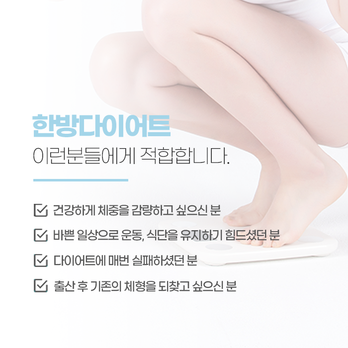 출산 후 체중이 잘 감량되지 않거나 사이즈가 잘 감소되지 않는 산모부들에게도 칠성동다이어트한의원 도움을 받으실 수 있습니다. 체질마다 알맞은 배합하는 한약으로 체중을 감량해주고 체질을 긍정적으로 개선되도록 변화시켜 줍니다. 또한 많은 산모들의 고민이 바로 붓기입니다. 기혈의 순환을 개선해주고 혈액과 혈류를 정화해주고 부종을 개선해주는 효과를 주고, 체중을 관리하게 도와줍니다.