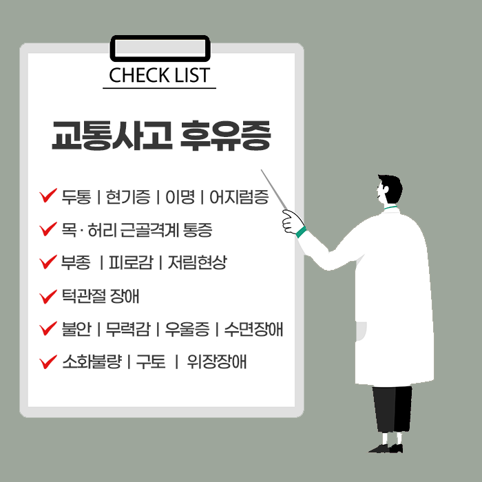 교통사고 후유증은 사람마다 증상과 회복 속도가 다르기 때문에 획일적인 치료보다는 개별적인 맞춤 치료가 필수적입니다. 사고는 순간의 충격으로 끝나지 않고 이후의 삶의 질에 영향을 미칠 수 있으므로, 초기 대응과 전문의의 진단, 치료가 매우 중요합니다.