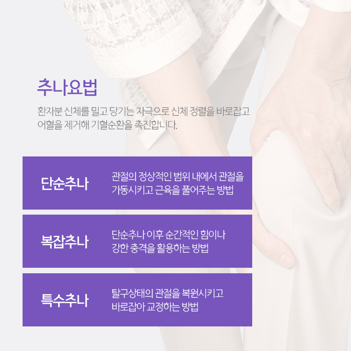 특히 목, 허리, 어깨 등 부위에서 발생하는 근육과 관절의 불균형을 완화하며 잘못된 자세나 반복적인 움직임으로 인한 불편감을 개선하고, 근육의 유연성과 관절의 기능을 회복하는 데 도움이 됩니다. 이는 약물에 의존하지 않고 신체의 자연 회복력을 촉진하는 방식이기 때문에 상대적으로 부작용 위험이 낮은 편입니다.