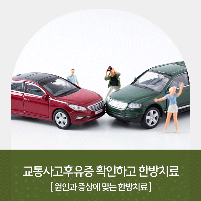 이러한 원인으로 발생하는 교통사고 후유증을 치료하지 않고 방치하면 시간이 지나 심해지면서 이후 건강과 일상에 만많은 영향을 미칠 수 있어 주의해야 합니다. 최대한 빠른 시일 내 적극적으로 대응하며 한방치료의 도움을 받으면 보다 원활하고 빠른 회복에 도움이 됩니다.